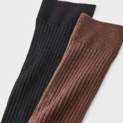 Women’s Ribbed Ultra Soft Everyday Rib-Knit 2pk Knee High Socks – Auden™ Black/Brown 4-10