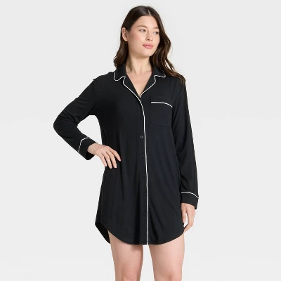 Drift into comfort with the Women’s Cloud Knit Notch Collar Long Sleeve Nightgown from Auden™. Made from ultra-soft, extra-lightweight jersey fabric, this nightgown offers a casual fit with a breezy feel that’s perfect for year-round sleep. Designed with long sleeves, a classic notched collar and a front button-down placket, it brings a comfy vibe to your nighttime routine. Thoughtful details like a front patch pocket, side vent and above-knee length make it as functional as it is cozy for relaxed evenings and slow mornings.