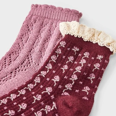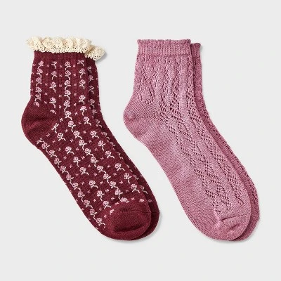 Step into softness and style with the Women’s Floral Lace and Pointelle 2pk Ankle Socks from Auden™ in Berry/Pink. This elegant two-pack features a blend of delicate floral lace and vintage-inspired pointelle patterns, designed to bring a sweet flair to your sock drawer. With a quarter height and unlined construction, these socks offer breathable comfort in a midweight fabric, making them perfect for everyday wear with sneakers, flats or boots.