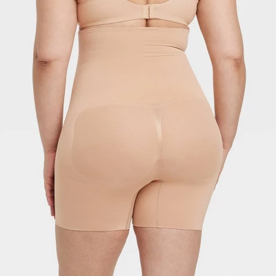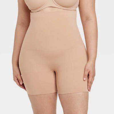 Create a smoother and sleeker look with these Medium-Shaping Mid-Thigh Waist Shorts from Auden™. This pull-on shapewear is crafted from nylon-spandex blend knit fabric in a high-waist, mid-thigh silhouette. It boasts a seamless construction with tummy-slimming, thigh-slimming, bottom-lifting and medium-shaping properties, allowing you to confidently wear a range of figure-flattering dresses.