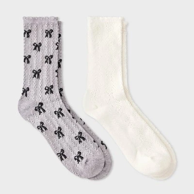 Add a sweet and stylish touch to your everyday essentials with the Women’s Scallop Edge All-Over Bows and Pointelle 2pk Crew Socks from Auden™ in Heather Gray/Black/Ivory. This charming set features two pairs of midweight knit socks, both finished with elegant scallop edges for a sweet vibe. The crew height offers versatile wear, pairing beautifully with sneakers, loafers or boots while keeping your feet cozy and stylish all day long.