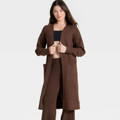 Wrap yourself in cozy luxury with the Women’s Sweater Robe from Auden™, a perfect blend of comfort and casual vibe. Made from soft, midweight jersey fabric, this robe features a casual fit that drapes effortlessly over your loungewear. The long sleeves, V-neckline and open-front design create a relaxed silhouette, while front slash pockets add a practical touch for warming hands or holding essentials. Whether you’re unwinding at home or starting a slow morning, this robe offers the ideal balance of warmth, softness and effortless style.