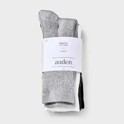 Keep your feet warm with the Women’s Ultra Soft Everyday Rib-Knit 4pk Crew Socks – Auden™ 4-10. These ultra soft socks are made from a blend of viscose, polyester and a hint of spandex provides a relaxed and easy feel. Ribbed knit cuffs provide a secure, snug fit that stays in place all day. They are perfect for lounging at home or for outdoor wear. These essential crew socks are a seasonless staple for every wardrobe.