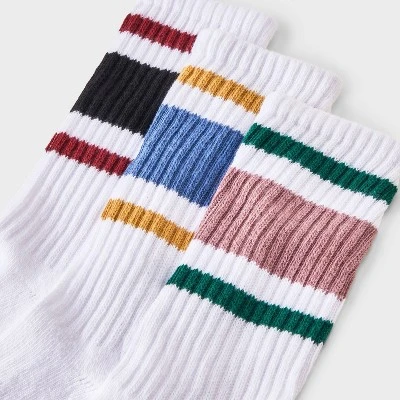 Women’s Varsity Stripe Ribbed Cushioned 3pk Crew Socks – Auden™
